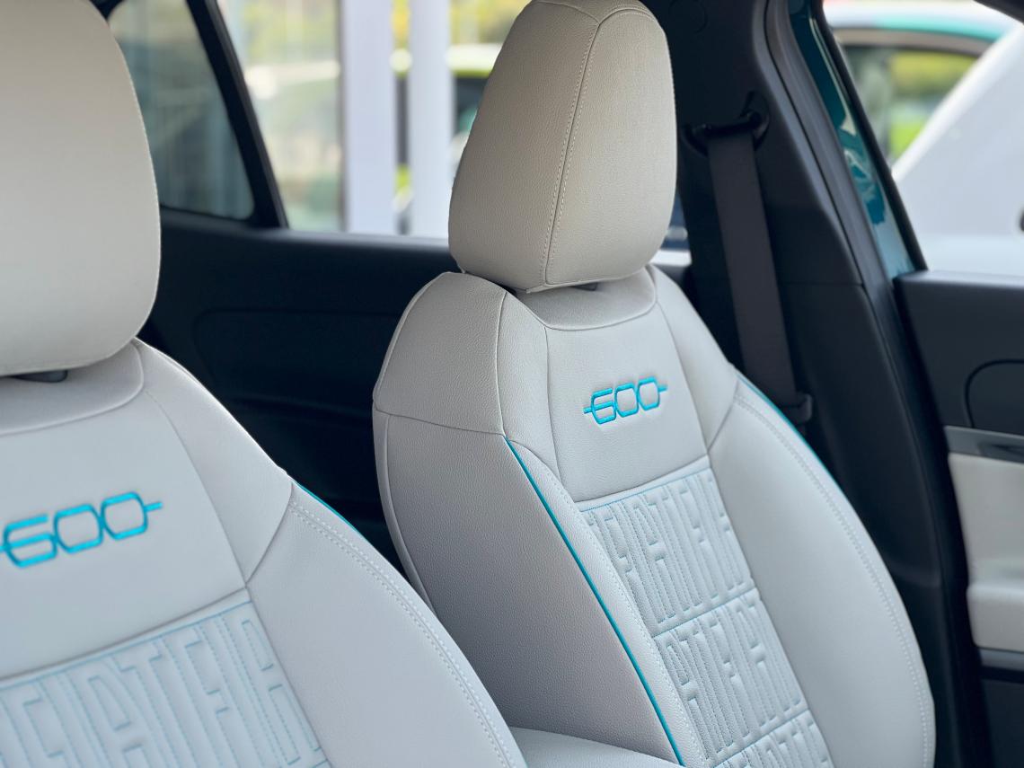 ブルーの刺繍で600ロゴが描かれたFIATモノグラムエコレザーシートを